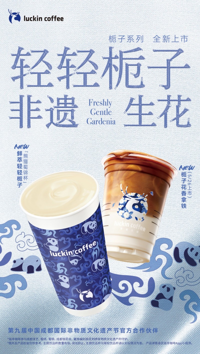 让人人手捧一杯非遗作品,中国味道加中国美学绝了!5月19日,作为第九届中国成都国际非遗节官方合作伙伴,瑞幸咖啡首次联名非遗,并推出 “轻乳茶·鲜萃轻轻栀子”等联名产品。一系列包装、杯套袋及周边物料非遗范儿十足,融入蜀锦、蜀绣、成都银花丝、成都漆艺、藏族编织挑花刺绣等非遗元素和传统技艺,让中国独有的茶香与非遗之美实现完美结合,让非遗融入现代生活,引发国风爱好者和茶饮消费群体热捧。