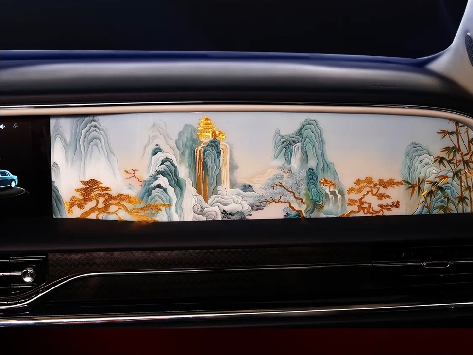 据悉,此次“兰亭雅韵” 主题定制版的工艺特邀轩灵珠宝和轩辕弘艺联袂完成。以大漆水墨和0.2毫米的24k金箔结合,将中国山水画移到车内,以工艺之繁复追求写意之自由,展现“兰亭雅韵”的中国匠心。