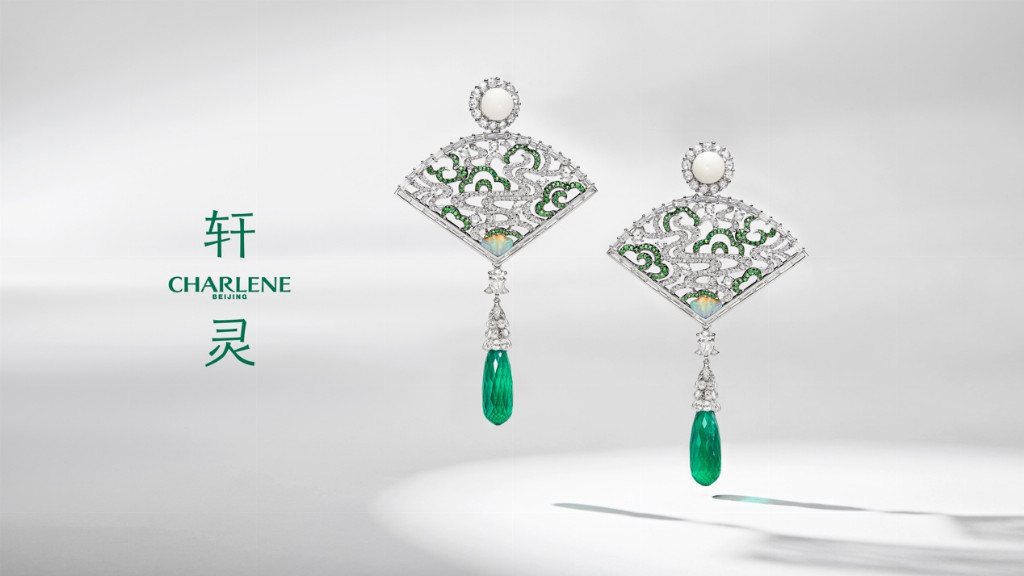 轩灵珠宝·大雅仁风·故宫系列典藏作品山水云纹祖母绿耳坠