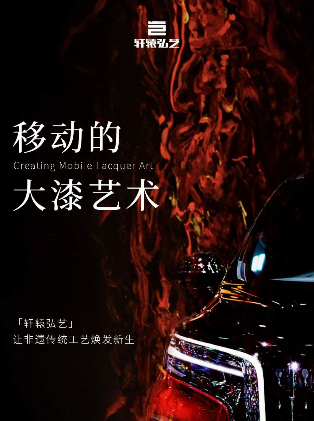 轩辕弘艺联合王艺、陈琦、郭子良、汤志义等众多知名艺术家与漆艺传承人,首创大漆工艺应用于汽车内饰,打造“移动的大漆艺术”。目前已成功将大漆、细木镶嵌、粤秀等多种非遗传统工艺广泛应用在红旗品牌的高端产品线上,受到国家的高度认可和国际广泛关注。