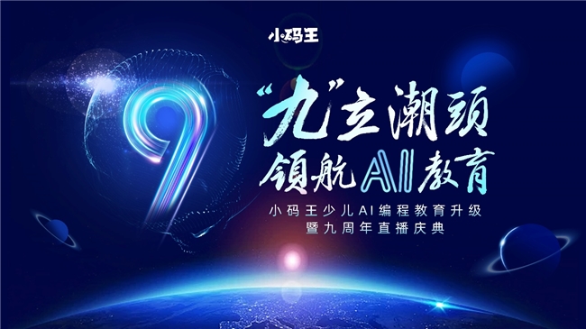 九载深耕,立潮头而领未来。5月17日,小码王少儿AI编程教育九周年庆典以“九立潮头,领航AI教育”为主题,通过高规格的线上直播,向行业、家长与学员交出了一份关于“AI时代教育”的答卷。从尖端科技企业合作到顶尖学术力量赋能,从信奥人才培养到品牌战略升级,小码王以一场高密度的思想盛宴,展示了少儿AI编程教育的无限可能。
