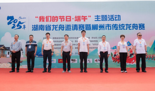 上午9时,赛事开幕式在翠江码头隆重举行。苏仙区人民政府副区长曹辉军致欢迎词,对参赛队伍、嘉宾和观众表示热烈欢迎。他指出,端午龙舟赛作为中华优秀传统文化的重要组成部分,饱含着中华民族的价值观念与情感记忆,是一项具有广泛群众基础的全民健身运动。郴州市全民健身服务中心党支部书记黄运礼致开幕词,他指出,举办此次龙舟赛为广大群众提供了参与体育活动的绝佳平台,有助于推动全民健身事业的蓬勃发展,让更多人在运动中享受健康、收获快乐。随后郴州市人民政府副秘书长何江洪宣布大赛正式开幕。