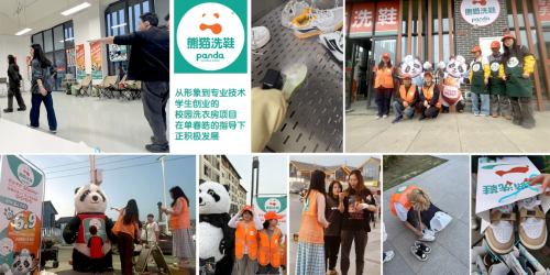 关于为什么给品牌取名“熊猫洗鞋”,单春皓讲解道:“熊猫是成都的符号,而且从深山竹林到都市霓虹,熊猫正完成从自然物种到文化超级符号的蜕变——它既承载着古老东方的哲学密码,又成为当代中国连接世界的柔性媒介,这种传统与现代、本土与全球的双重性,恰是当下中国复杂文化生态的精准投射。但选它做品牌还有更深考量",他突然指着墙上的LOGO向学生解释,"因为洗鞋和保护熊猫其实很像——我们对待每一双鞋,就像我们对待熊猫一样呵护备至。"这位创始人笑着补充:"我们还成功注册了'熊猫洗衣'、'喜刷刷'等商标,我们正为打造覆盖全领域的洗护生态链而努力。"