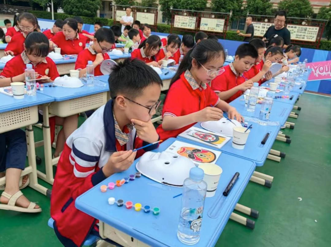 学生们绘制传统川剧脸谱