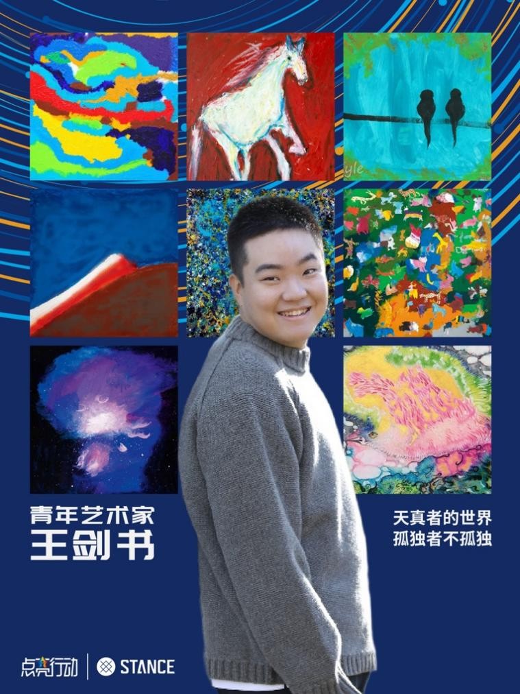 本次“错袜”联名合作特别邀请了点亮行动公益计划的“星光使者”——孤独症青年艺术家共同参与创作。其中,首位合作的“星光使者”为青年艺术家王剑书。他以独特的视角与纯净的内心,在画布上描绘出充满童真与想象的星空世界。其作品构图自由、色彩灵动,展现了内心世界最真挚的表达。