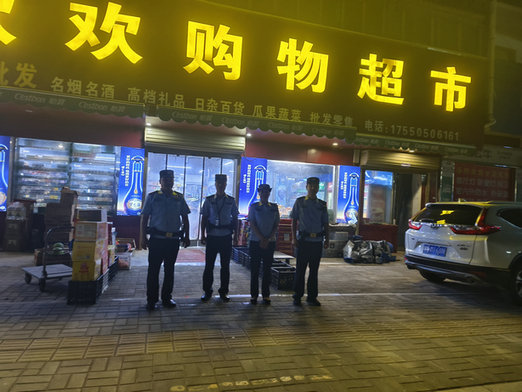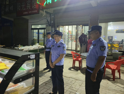 河集派出所夜市夜间巡逻、消防安全检查同时开展