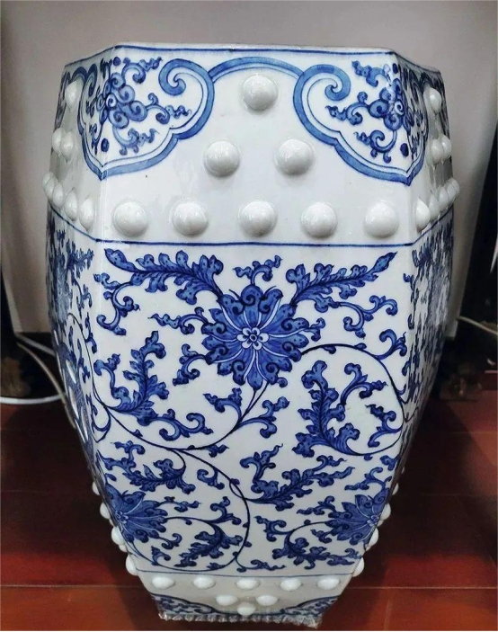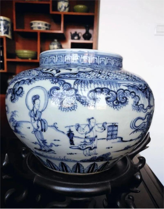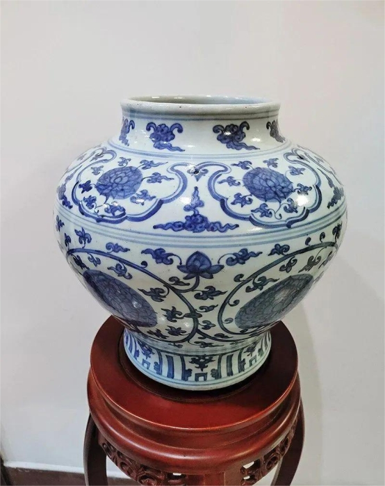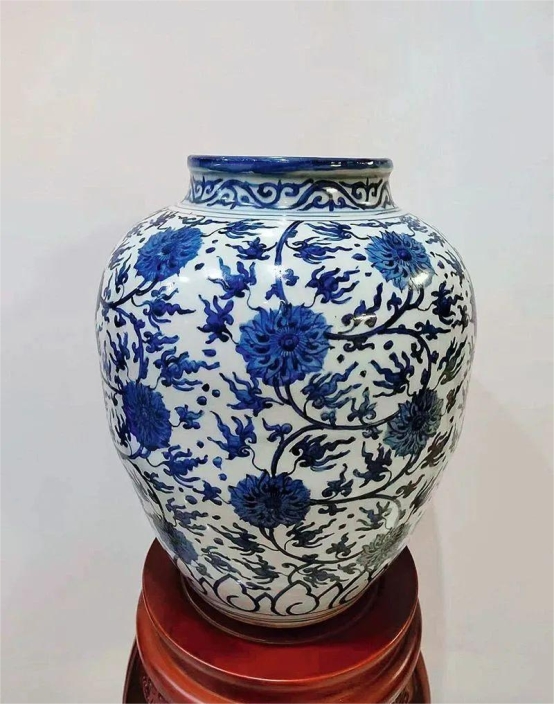 刘麟武的曾祖父刘鸿文收藏的明万历青花缠枝莲纹大罐,高54cm