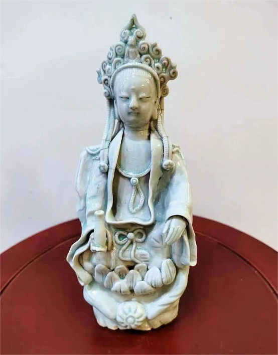 刘麟武收藏的藏品——南宋景德镇湖田窑影青釉观音坐像