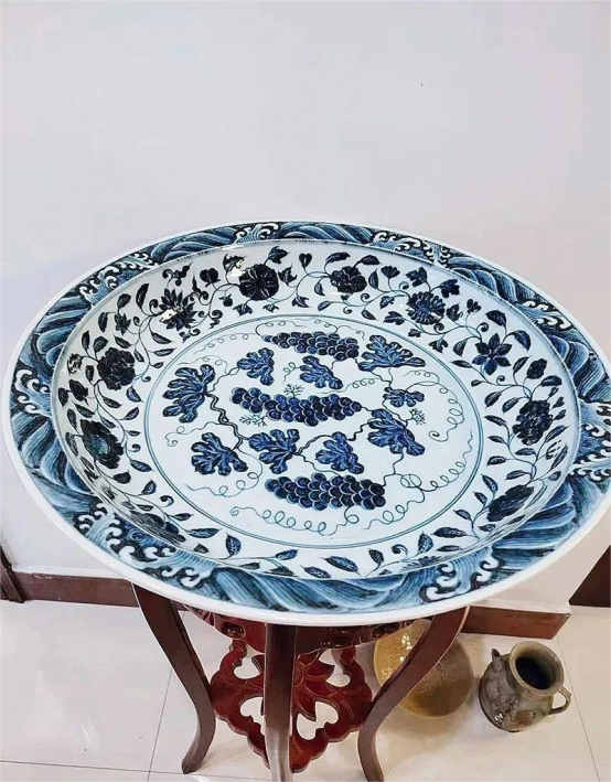 直径为46cm的明永乐青花葡萄纹大盘,是少见的官窑重器