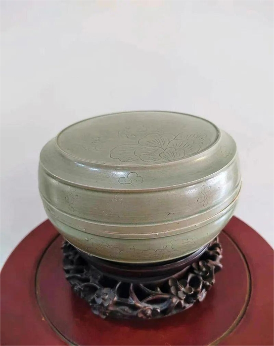 五代越窑蝴蝶纹密色瓷盖盒,直径17cm