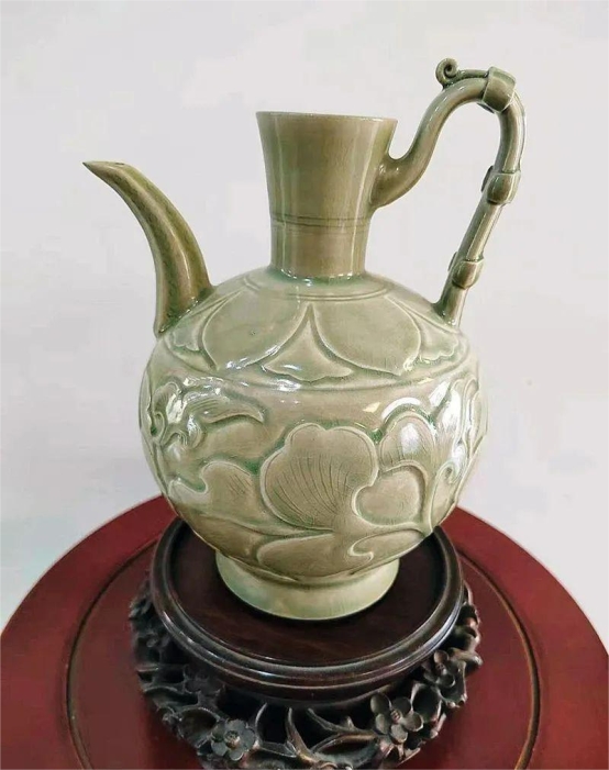 五代越窑密色瓷执壶,高18cm