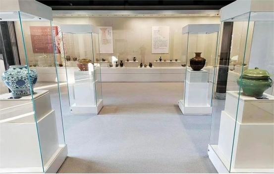 2024年,刘麟武与泰州文旅集团合作成立古瓷艺术馆,无偿借展标本数十件、完整器百余件,为地方文旅事业注入文化动能。图为古陶瓷艺术馆展厅