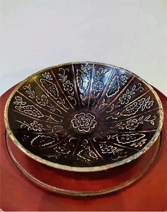北宋定窑花卉纹斗笠盏,直径18cm
