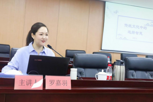6月18日下午,罗嘉羽博士于坂田街道办会议室为坂田街道纪工委、妇女联合会、综合行政执法队等相关职能部门作了题为《传统文化中的选择智慧》专题讲座。