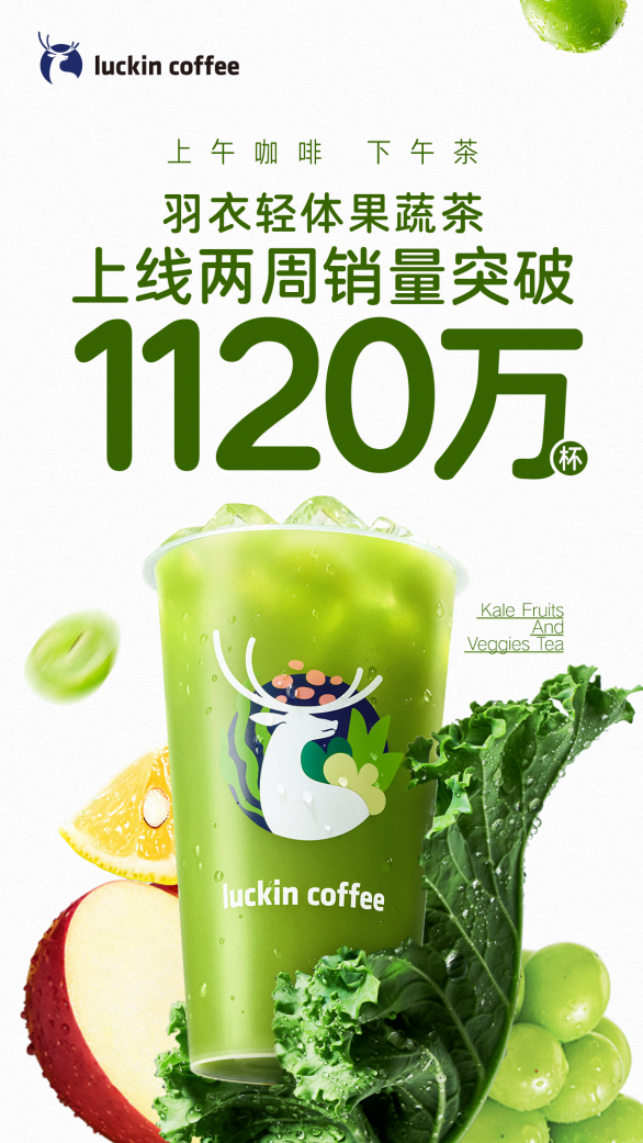 根据瑞幸咖啡官方披露的数据,羽衣轻体果蔬茶上线2周的时间,销量突破1120万杯。而与热播剧《长安的荔枝》联名的荔枝冰萃系列,上线两天一度被抢到断货。