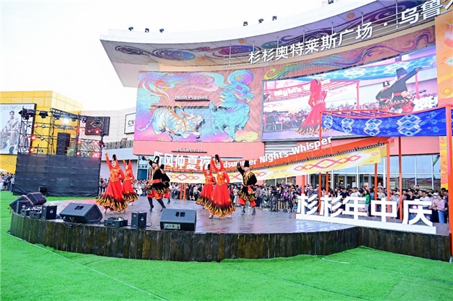 乌鲁木齐杉杉奥特莱斯购物广场作为全疆首家纯正奥莱,开业五年来坚持做文化艺术的传播者。而它的破局之道,就蕴藏于“润物细无声”的文化磁场里:“五星映疆杉”灯饰画,将千年文物的神秘星象幻化成巨型光影长卷,夜幕降临,当“五星出东方利中国”的古老吉言在夜空中璀璨流转,文化自信与商业美学完成奇妙共振。两届城市艺术节、非遗花灯展,让每个节日都成为文化IP的“孵化器”,两次获得亚洲地区最具权威和代表性的商业企划美陈奖项之一——金灯奖的荣耀,印证着这场文化营销的精准发力。