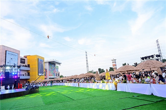 除了极具新疆特色的硬核美食之外,精彩绝伦的非遗表演同样让人目不暇接。惊险刺激的高空达瓦孜表演震撼登场,“高空王子”阿迪力·吾休尔的三名爱徒手持平衡杆,在数十米高的绳索上如履平地,时而行走,时而跳跃,甚至做出系列高难度动作,每一步都牵动着观众的心弦,人群中不时爆发出阵阵惊呼与热烈的掌声。“这是我们近些年演出碰到观众人数最多的现场了,所以原定一人的演出我们主动要求上场三人,就是想让更多人感受达瓦孜的魅力!”阿迪力·吾休尔激动道。