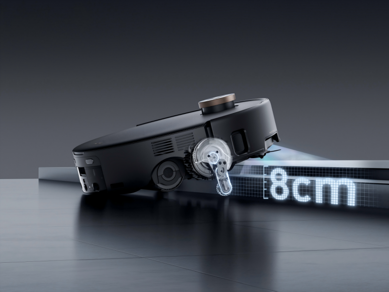 AI全地形底盘调校技术,灵感来源汽车悬挂系统,能自适应调节底盘高度,搭配上越障轮足,至高可翻越8cm的越障高度,家中常见的门槛、阳台移门滑轨等都能轻松应对。而其灵探™潜望式智航系统,则运用了LDS技术,该技术具备导航强、定位准的优势,但其凸起的雷达会影响扫地机的厚度,导致机器无法进入家庭中的低矮空间,造成清洁盲区,因此MOVA通过升降LDS技术解决了这一难题,在即将进入低矮空间时,Z60 Pro会降下LDS雷达,这时整机厚度仅96mm,面对床底、沙发也能畅行无忧,且同时会通过RGB AI进行辅助导航,即便在黑暗的低矮空间,依然具备定位准、避障强的能力。
