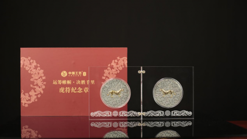 这款纪念章由中国工艺携手正高级工艺美术师沈志云倾力创作,其创新性地采用“双章合一”的互动机关,巧妙地将两枚独立章体通过精密嵌合,重构上古虎符形制,生动再现了古代“合符为信”所蕴含的兵家睿智。这一独特设计,不仅是对传统虎符文化的深度传承,更是对中华民族智慧结晶的崇高致敬,表达出对民族团结、家国一体的深情礼赞。