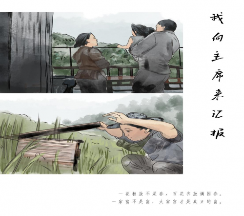 四人分别代表老弱、青年、女性、干部群体,共同构成小康路上的立体样本。