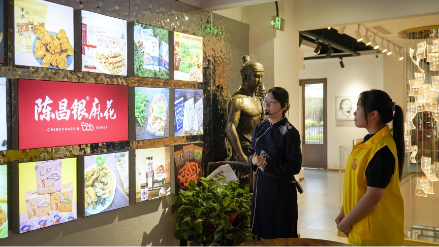 (团队成员聆听麻花历史讲解 摄|秦梦雪)