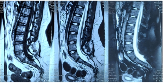 图1为1年前脊髓拴系松解术前磁共振检查片子