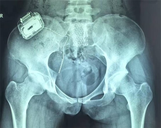鉴于一期手术的良好疗效,患者家属决定进行二期永久植入,将骶神经电极及脉冲发生器永久性植入患者体内。二期手术后,患者白天已经无漏尿,夜间偶有遗尿(目前仍在调整过程中,希望通过调整合适的刺激参数,后续能够得到更好的改善);排尿费力感减轻(术前为点滴状,现尿线变粗,最大排尿量达220ml);肛门周围已恢复部分感觉,整体改善非常显著。