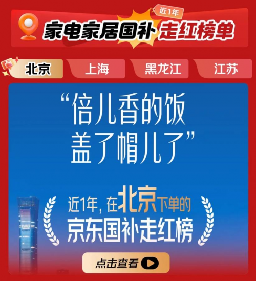 17年来,京东家电始终注重品质消费,通过持续的优质产品筛选、供应链能力升级和服务创新,赢得了全国亿万家庭的信赖与喜爱,成为消费者换新家电家居的首要选择之一。基于过去一年消费者的“用脚投票”,京东深入挖掘不同区域消费者的差异化需求,在本次家电家居815周年庆期间重磅发布多省“京东国补走红榜”,生动勾勒出中国品质消费市场的区域特色图谱。