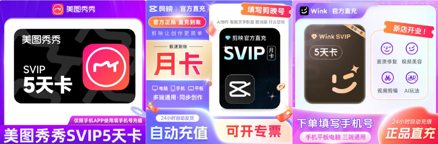 旅行途中会拍摄不少照片和视频,如果需要修图或剪辑成vlog后发布在社交平台,那就可以来京东为APP充值,让修图、剪辑更简单。其中,美图秀秀SVIP 5天卡到手价11.9元,剪映SVIP月卡到手价37.9元,Wink SVIP 5天卡到手价15元。