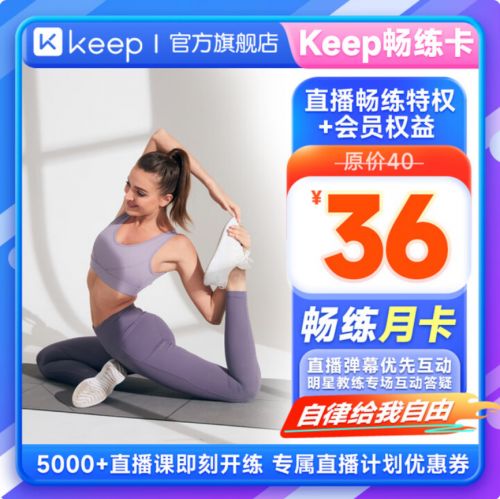 想趁假期在家运动的消费者可以选择来京东办理Keep畅练月卡,到手价36元。