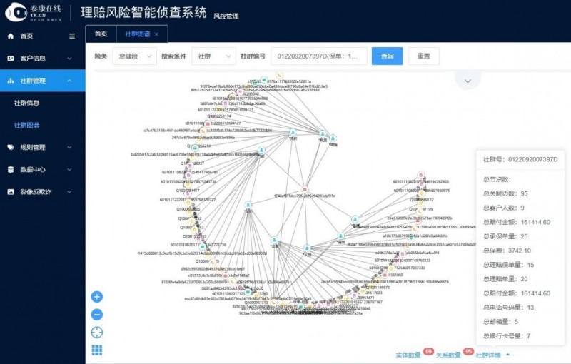 科技赋能,让泰康在线的反欺诈系统具备了"火眼金睛"能力。以反欺诈管理平台为例,该平台应用关系图谱、图文多模态大模型、影像特征检索等技术创新,打通了两核应用链路,实现健康险、车险、财险全险种集中化管理、风险分级体系搭建和理赔全过程风险监控,形成事前核保拦截、事中理赔预警、事后重点回溯的闭环管控体系。截至目前,该系统已累计为泰康在线减损超6700万,同时取得了三项国家技术专利授权,收获“人工智能全国专项赛二等奖”等权威奖项。