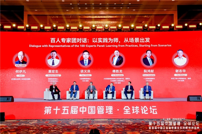2025年10月17日,由中国管理·全球论坛组委会、中国管理模式50人+论坛(以下简称C50+)主办,海信集团控股股份有限公司与金蝶国际软件集团有限公司联合承办的第十五届中国管理・全球论坛暨首届“中国企业管理最佳实践榜”发布盛典在山东青岛落下帷幕。本届论坛以“AI+管理:铸就新质生产力”为主题,汇聚中外管理菁英,共同探讨AI时代的管理变革与创新。其中由《中国企业家》杂志副总编辑何伊凡主持,创维集团创始人、开沃集团创始人黄宏生,九如城集团创始人谈义良,大汉控股集团有限公司党委书记兼董事长、大汉国际工匠院创始人傅胜龙,一心堂集团董事长阮鸿献,北京工商大学原副校长、教授谢志华等人参与的“以实践为师,从场景出发”圆桌论坛,以跨行业的实践碰撞,成为整场盛会的思想焦点之一。