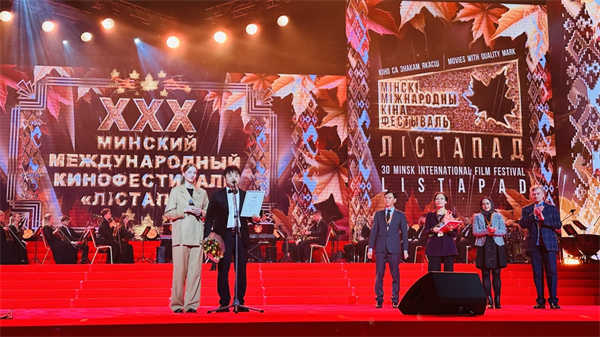 来自中国、意大利、西班牙、印度、伊朗、俄罗斯等100多个国家的电影人齐聚明斯克,在白俄罗斯经典的歌舞表演中徐徐揭幕了2024年度“落叶时节”明斯克国际电影节的各项大奖。最后压轴的奖项,也是本届电影节主竞赛单元最高奖——最佳故事片金奖,颁给了由中国、伊朗和哈萨克斯坦共同制作的“一带一路”主题电影《长安·长安》,制片人史佳代表剧组领奖,并在获奖感言中向全球推介西安。