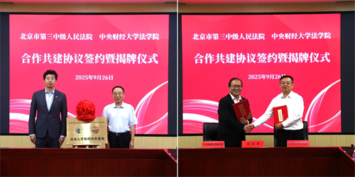 9月26日,我校法学院与北京市第三中级人民法院举行法治人才协同培养基地合作共建协议签约暨揭牌仪式。北京市第三中级人民法院党组书记、院长薛春江,我校副校长栗峥,市三中院和我校法学院有关负责同志参加活动。