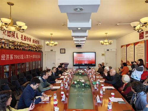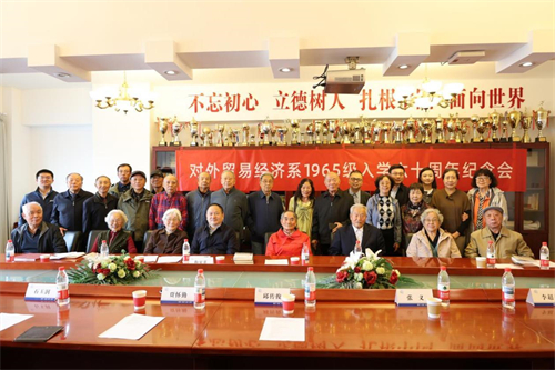 秋高气爽,丹桂飘香。2025年10月10日,国际经济贸易学院在博学楼1224会议室举办1965级校友入学六十周年纪念会。十余位对外贸易经济系1965级部分校友、1964级校友代表张义、任课教师代表邱传俊、教务教师代表石玉润、李秋野老院长女儿李玲玲、李超英等重返惠园,共庆入学六十周年。对外经济贸易大学党委常委、副校长梅夏英,校友与基金工作处处长王小军,图书馆馆长唐兴全,国际经济贸易学院党委书记薛熠,国际经济贸易学院副处级组织员宋希永和学生代表参加纪念会。纪念会由国际经济贸易学院党委副书记杜姝君主持。