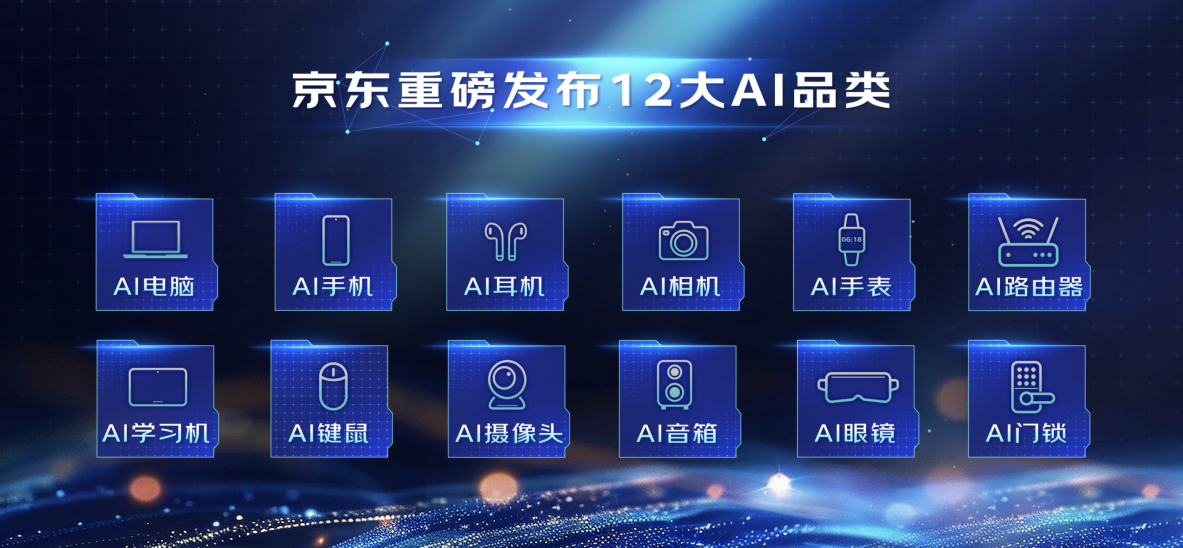 在这场AI硬件消费热潮中,只有充分理解消费者的需求,才能真正以3C数码硬件换新提高工作和生活效率,为推动AI普惠按下加速键。基于对AI硬件市场发展趋势的深刻洞悉和对消费需求的精准洞察,京东在今年618前夕正式发布了包括AI电脑、AI手机、AI耳机、AI相机、AI学习机、AI键鼠、AI手表、AI路由器、AI眼镜、AI门锁、AI摄像头和AI音箱在内的12大AI品类。
