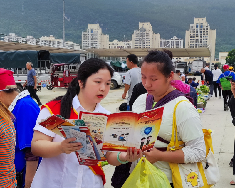 宣传活动中,该行通过营业厅电子屏等播放防范非法集资金融知识、宣传栏摆放宣传折页、宣传资料,充分发挥宣传教育对消费者权益保护“第一道防线”的作用,提高消费者对金融产品的认知能力和风险防范意识。青年志愿者利用赶集日深入农贸市场、商户和小区,以典型案例、防范提示为载体,向群众发放防范非法集资的宣传折页、宣传传单,通过拉家常的方式,向群众普及现在的非法集资很多通过社交媒体软件、短视频平台和非上架APP的方式,以养老服务、虚拟货币、理财投资、生物科技等为噱头产生高收益的套路设立陷阱,让人上当。青年志愿者通过浅显易懂的语言,结合身边的案例讲解,围绕群众关注的各类问题,耐心逐一进行解答,使群众听得懂、记得住、用得上,使“远离‘保本高收益’”的理念深入人心。