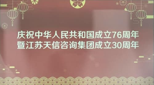 近日,“江苏天信集团迎国庆、庆周年” 主题活动在南京隆重举办,旨在热烈庆祝中华人民共和国成立 76 周年,同步纪念江苏天信咨询集团成立 30 周年,集团员工代表、合作伙伴及行业嘉宾共襄盛会。