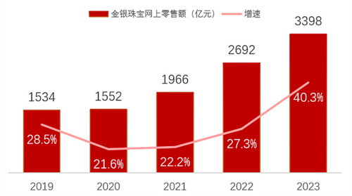 在全球经济不确定性增加的背景下,黄金作为特殊商品的地位和作用更加凸显。且随着年轻群体的扩大,线上黄金珠宝的销售额和增长率持续增长,黄金行业的发展再次迎来了新的机遇和挑战。