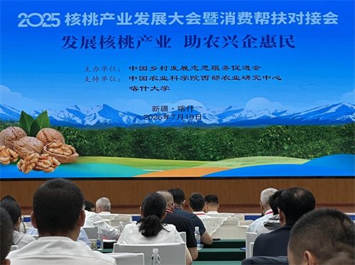 7月19日上午,由中国乡村发展志愿服务促进会主办的2025核桃产业发展大会暨消费帮扶对接会在喀什举行。十四届全国政协委员、中国乡村发展志愿服务促进会会长刘永富,喀什地委副书记李宏琪,新疆维吾尔自治区林草局党委委员、副局长张华,农业农村部区域协作促进司督查专员刘胜安分别致辞。中国乡村发展志愿服务促进会副会长欧宏新主持大会开幕式。