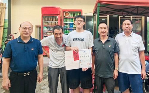送助学金那天,阳光洒满小店。宁远县烟草专卖局(分公司)的党员干部们带着红色信封和精心准备的礼物走进来。“彭大哥,恭喜安鑫考上这么好的大学啊!这是我们的一点心意,希望能帮孩子顺利入学。”一位党员干部笑着说道,同时递上了印有“警徽映初心”的红色信封。彭安鑫接过信封,泛红的眼眶里跃动着感激与决心,他声音略带哽咽地说:“谢谢叔叔阿姨们,我一定会好好学习,不辜负大家的期望!”