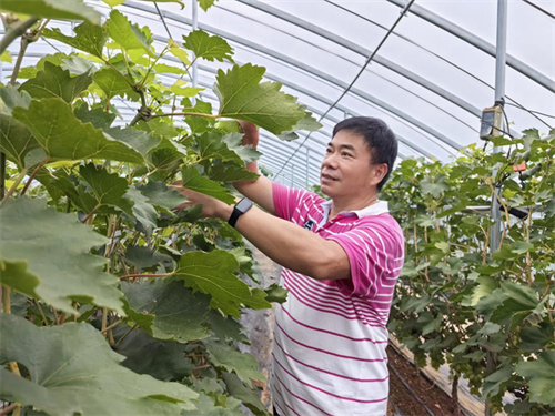 为真正把葡萄种好,给村集体产业蹚出一条新路子,驻村工作队一方面构建“专家定期驻点+线上实时指导”服务机制,每月邀请专家到村里开展技术培训与现场指导;另一方面,刻苦自学,从施肥、剪枝、疏果,到防病、防虫,全部亲力亲为、边学边干。
