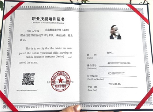 由中央电化教育馆颁发的家庭教育指导师证书,具备极高的专业性与唯一性。证书采用唯一编码与二维码防伪标识,可通过官方网站查询真伪,全国通用且终身有效,为持证人开展家庭教育指导工作提供了坚实的资质保障,成为个人专业能力的有力证明。