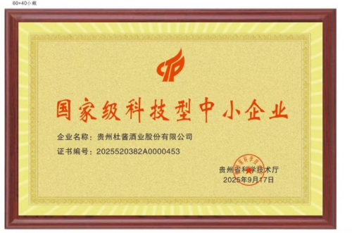 近日,贵州杜酱酒业股份有限公司荣获国家级科技型中小企业荣誉证书,这一殊荣,不只是荣誉的加冕,更是企业长期坚持“传统工艺与现代科技融合”理念的成果体现。从一座朴实的酒厂,到拥有现代化生产线与科研力量的企业,杜酱酒业走过的每一步,都酝酿着时间与信念的味道。