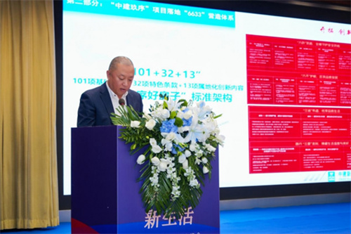 中建新疆建工投资发展公司党总支书记、董事长、总经理杨明围绕“好房子”营造体系的探索与实践进行交流,中建新疆玖居房地产开发有限公司、香港华艺设计顾问公司、中建西北设计院、中建智地置业有限公司、中建新海(新疆) 城市运营有限公司分别就“好房子”的项目实践、创新设计与优质服务等方面进行了深入分享。