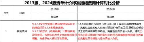 新版24版清单标准较13版清单计价规范更加明确了措施费用的风险承担范围、计价风险、以及工程变更引起措施费用调整的方法等相关规定。主要变化可参考如下对比表: