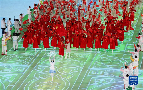 当家喻户晓的《歌唱祖国》乐曲声响起,东道主中国代表团高举五星红旗步入会场。体育健儿挥手致意,现场观众起立鼓掌。在本届冬奥会上,中国代表团全项目参赛实现历史突破,朝着“取得我国冬奥会参赛史上最好成绩”的目标全力进发。