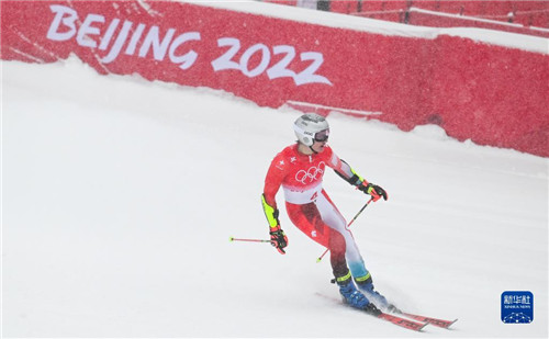 2月13日,瑞士选手马尔科·奥德马特在北京冬奥会高山滑雪男子大回转比赛中。新华社记者连振摄