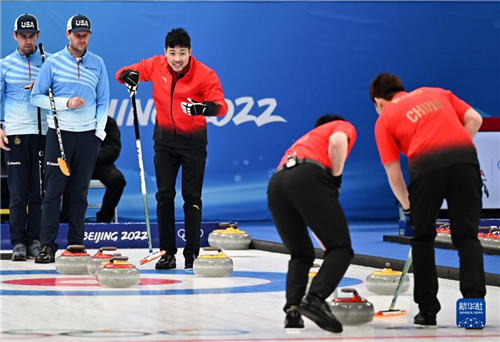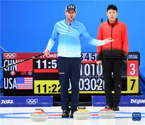 美国男子冰壶队队长舒斯特略显疑惑:“你确定不需要?”马秀玥摆摆手,示意比赛继续。