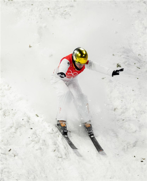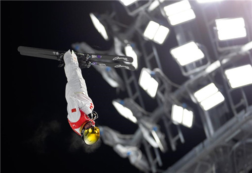 2月15日,中国选手齐广璞在北京冬奥会自由式滑雪男子空中技巧资格赛中。新华社记者费茂华摄